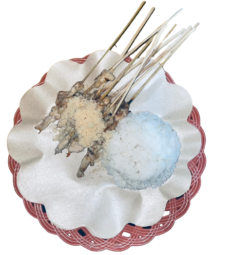 Saat ini kami menjual sate asin/pedas dengan koya dan dapat disajikan dengan nasi atau lontong.